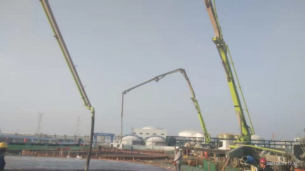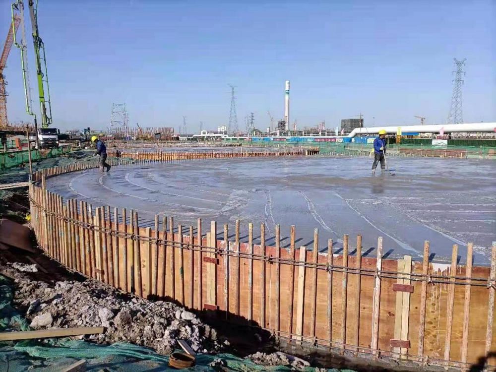 劳动创造幸福,实干成就伟业。项目各参建单位坚守岗位,奋战一线,铆足干劲抢工期,以昂扬的精神状态和实干的工作作风推动项目建设。施工现场,工程机械在有序作业,挖掘机的轰鸣声震耳欲聋。经过24小时的不间断作业,调节罐、事故罐三个罐体基础,共一千八百九十七方混凝土全部浇筑完成,用劳动者最美的背影为自己的节日增添色彩。