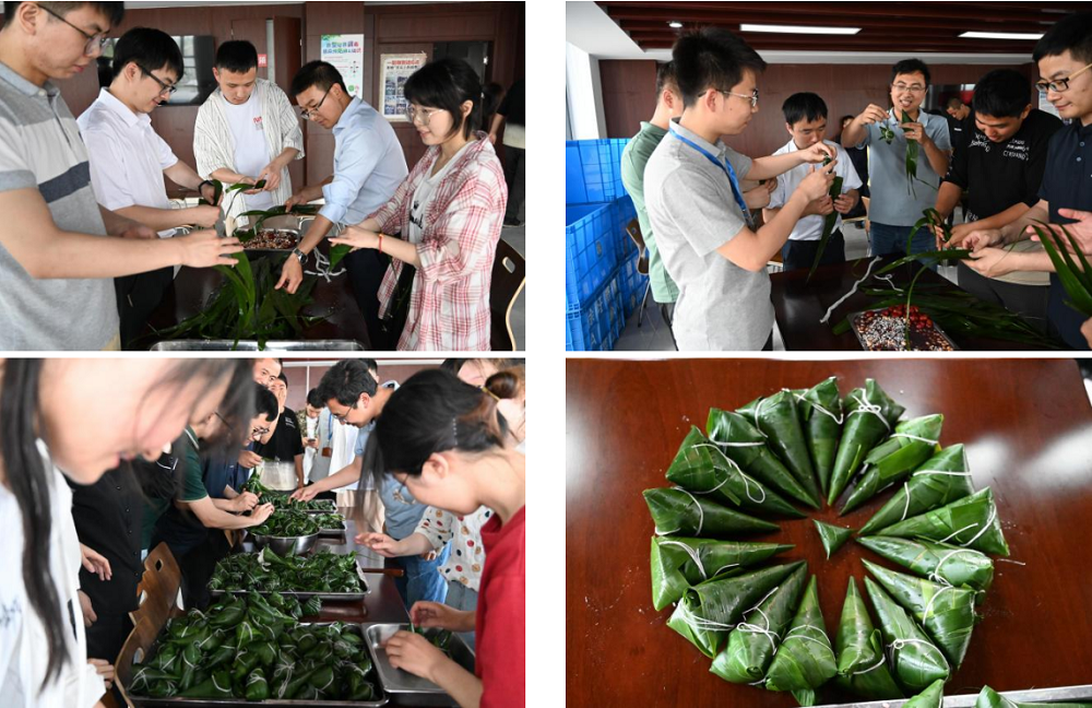 活动以比赛方式进行,大家积极踊跃参与,分组配合,相互协作,不一会儿,各参赛组的粽子纷纷展现出来,三角的、四角的,mini版的,巨无霸版的,各式各样,特别有趣。比赛结束,大家按照“速度、数量、质量、美观”等评判标准,评选出了包粽子比赛的前三名并颁发奖品。活动现场欢声笑语,粽香四溢,洋溢着浓浓的节日氛围。