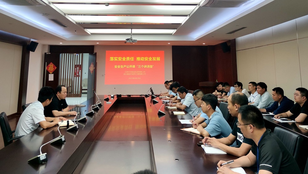为全面贯彻习近平总书记关于安全生产的重要论述和对江苏安全生产工作的重要指示批示精神,落实新区及集团“安全生产月”活动安排,大力提升公司员工安全素质,6月29日,方洋建投公司组织开展了“三个讲清楚”安全生产公开课,公司董事长郑彬给公司项目管理人员上了一堂深刻的公开课。