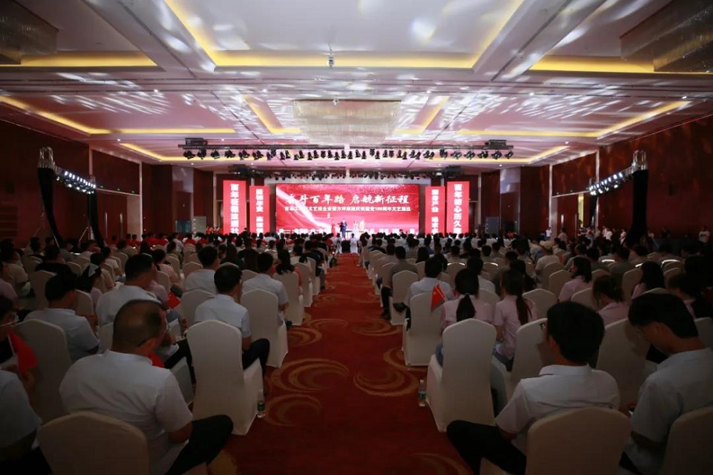 为庆祝中国共产党成立100周年,进一步推动党史学习教育往深里走、往心里走、往实里走,推进企业发展,7月14日下午,“奋斗百年路,启航新征程”连云港市总工会送文艺进企业暨万象城(中国)庆祝中国共产党成立100周年文艺演出在徐圩新区大陆桥国际会议中心上演。广大干部职工用精彩的文艺节目热情讴歌党的百年光辉历程和丰功伟绩,表达对党的无限热爱和美好祝福。