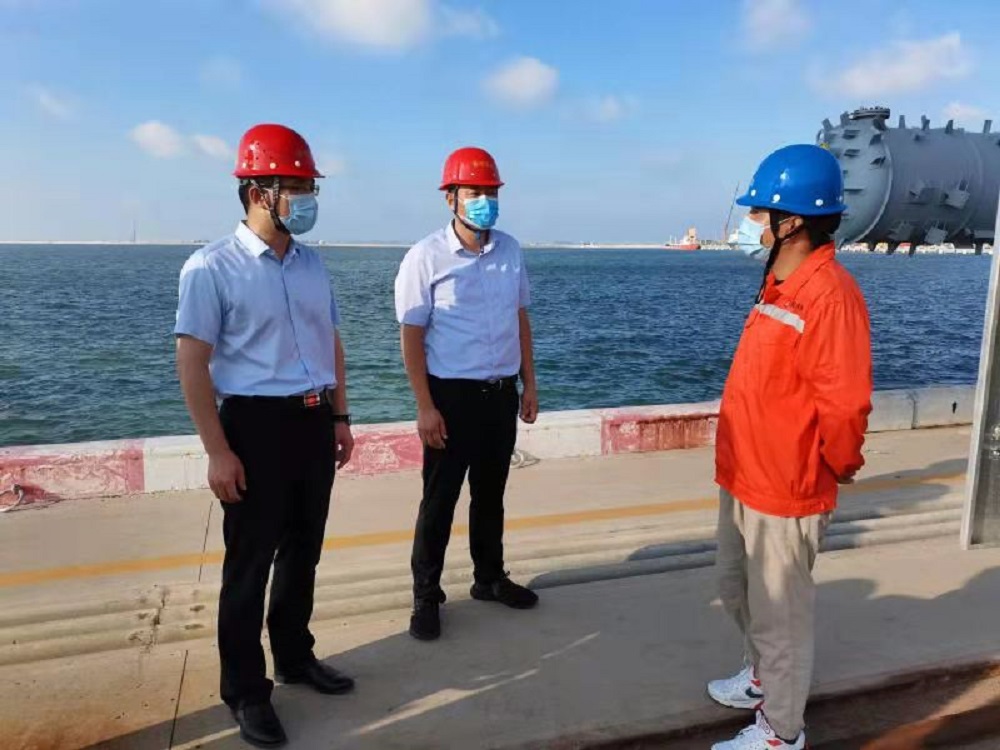 7月22日下午,万象城(中国)分管领导带领港投公司防疫检查组来到徐圩港区封闭管理卡口、码头生产及二港池综合服务区检查疫情防控措施落实情况。