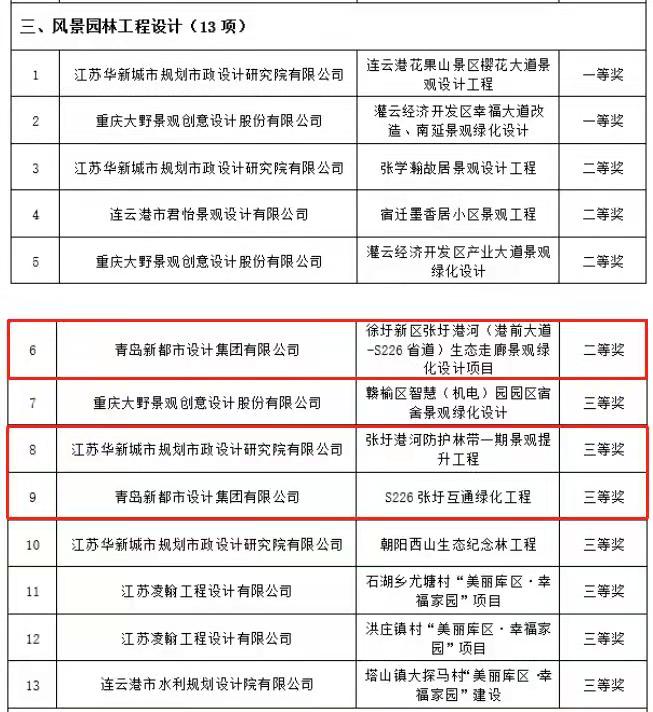 由连云港市住房和城乡建设局组织开展的“2021年连云港市城乡建设系统优秀勘察设计评选活动”获奖名单近日公示,徐圩新区共有16个工程项目获奖,其中江苏方洋建设工程管理有限公司斩获其中12个项目奖项,包括一等奖2个、二等奖5个、三等奖4个、表扬奖1个,占新区获奖项目总数的75%。