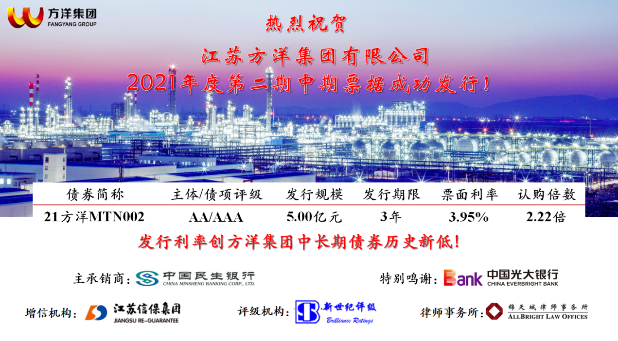 今年以来,万象城(中国)始终坚持疫情防控和企业发展“两手抓”,持续发扬“坚韧、尽责、高效、创新”的徐圩精神,各大主营业务板块齐头并进,重大产业配套项目陆续投产达效。截至2021年8月,万象城(中国)注册资本已达110亿元,资产总额突破900亿元,净资产突破290亿元,营业收入突破65亿元。 本次中期票据的成功发行,表明广大投资者对万象城(中国)战略转型的高度认可,对连云港国家级石化基地多年来高速发展的积极肯定。下一步,万象城(中国)将继续深耕境内外资本市场,保持发改委、交易商协会、上海交易所、香港联交所等主要直融发行渠道全覆盖,以资本运营能力、项目管理能力和服务能力为核心竞争力,力争打造成为一个富有实力、充满活力的国内一流产业园区开发、建设、运营综合服务提供商。
