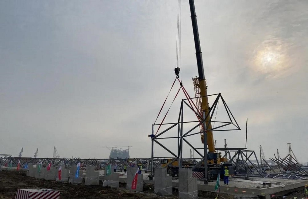 9月9日,由江苏方洋物流有限公司建设的省“十四五”规划重点工程——连云港现代煤炭供应链服务示范基地工程(简称“煤炭基地”)配煤罩棚钢结构网架吊装作业顺利启动。