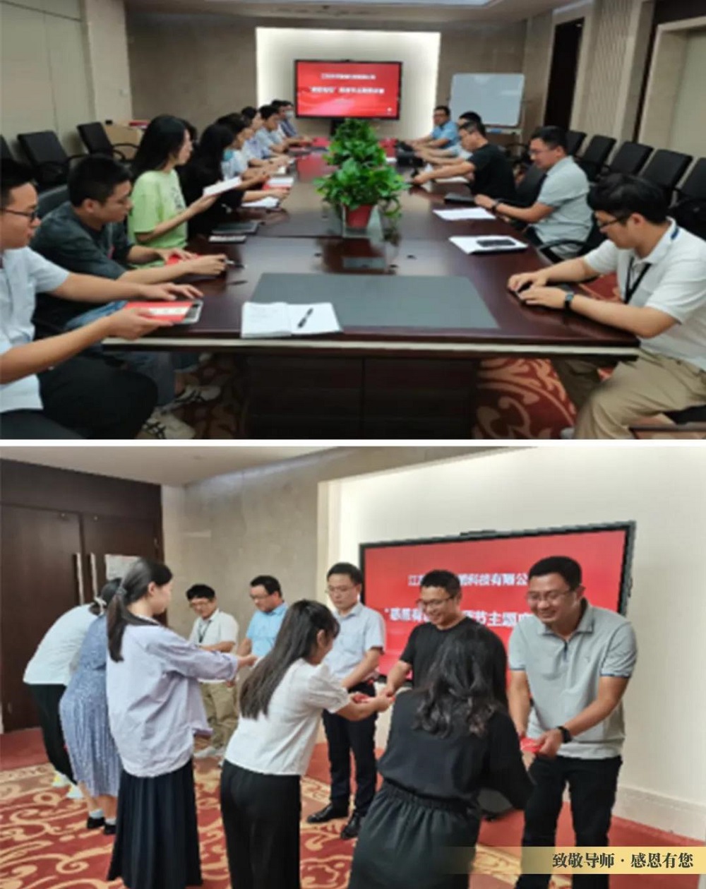 9月10日,智能科技公司组织“感恩有您”--“菁英人才”教师节主题活动,公司5名导师及10名“菁英人才”参加活动。活动伊始,“菁英人才”向各自导师深深鞠躬表达感激,并献上拜师贴。随后,学徒们与导师开展交流座谈会。“菁英人才”积极分享自己入职以来的工作、生活感悟,并就目前存在的困难向导师寻求帮助。5位导师逐一解答,并鼓励各位学生在今后的工作中抓住机遇,不断提升自我,为公司发展贡献青年力量。