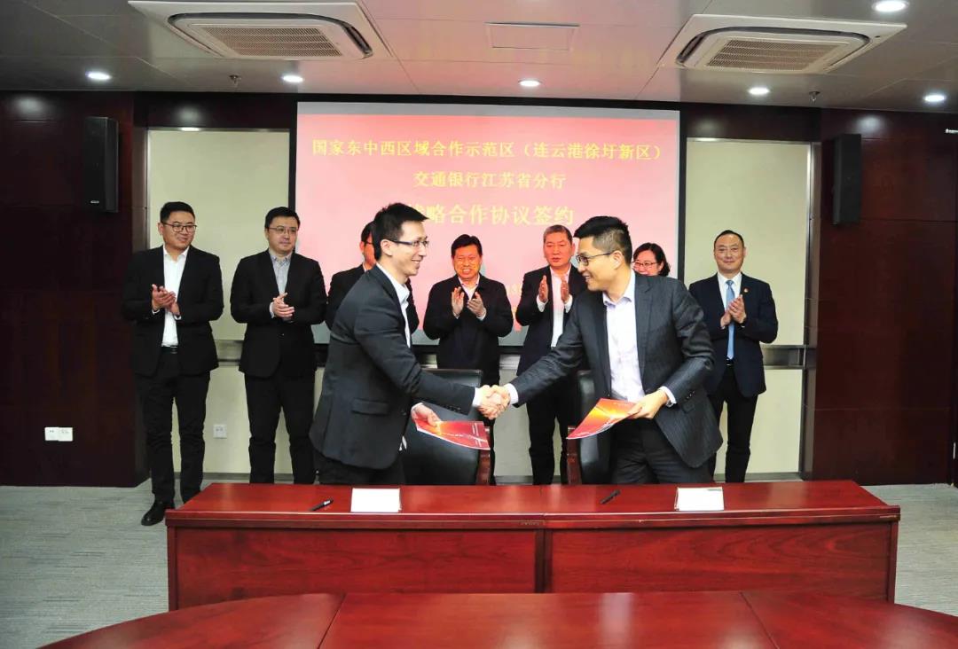 1月13日,连云港徐圩新区与交通银行江苏省分行签订全面战略合作协议。交通银行江苏省分行党委副书记、副行长林波,徐圩新区党工委书记石海波共同出席签约仪式。
