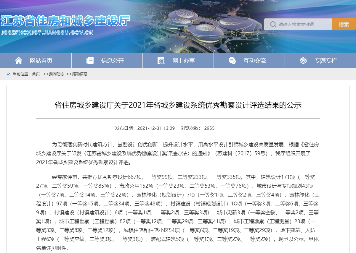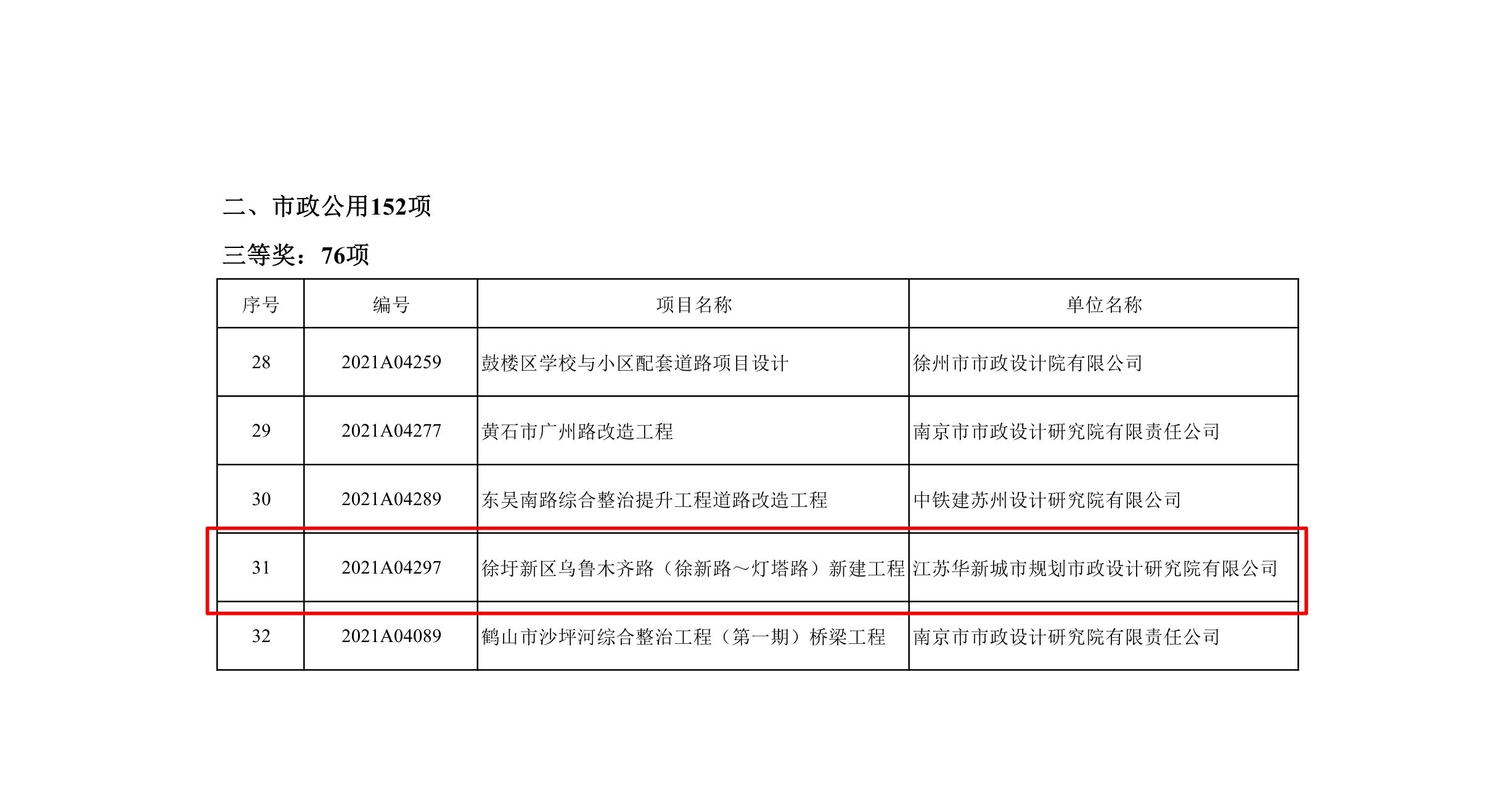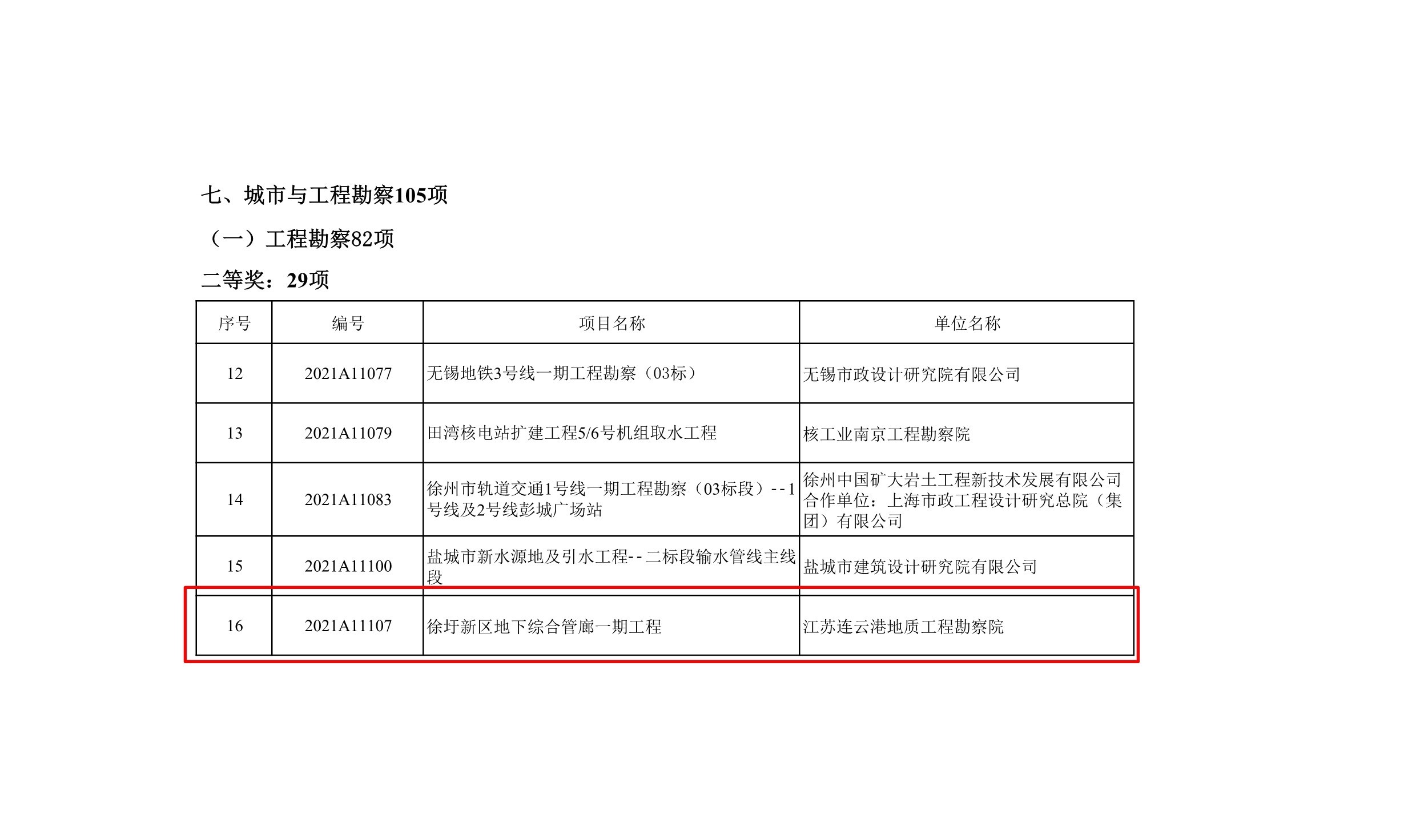 由江苏省住房和城乡建设厅组织开展的“2021年省城乡建设系统优秀勘察设计评选活动”评选结果近日公示,方洋工程管理公司建设项目表现优异,喜获优秀勘察设计奖两项。其中徐圩新区地下综合管廊一期工程获评城市与工程勘察类二等奖,徐圩新区乌鲁木齐路(徐新路~灯塔路)新建工程获评市政公用类三等奖。