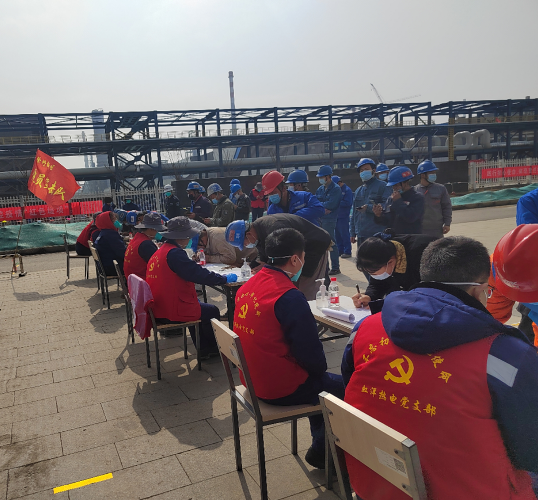 在虹洋热电党总支号召下,“红马甲”党员突击队不舍昼夜、科学组织,引导超2000人的公司职工及建设工人做好防护措施,按规范流程参加核酸检测;协助医护人员进行信息登记,保证了核酸检测工作高效有序开展。截至3月16号,虹洋热电累计完成了10轮,共计逾18000人次的核酸检测工作。“红马甲”们带头冲在一线,以最快的速度、最严的措施、最果断的行动投入到疫情防控阻击战中。在广大党员干部的影响和号召下,虹洋热电全体员工坚定信心、齐心协力,克服了疫情管控、员短缺等诸多困难,确保了生产工作正常运转、扩建项目稳步推进。 疫情防控工作未结束,虹洋热电党总支及全体党员将继续全面落实联防联控措施,戮力同心、迎难而上,坚决打赢这场疫情防控阻击战,让党旗在一线飘扬,让党徽在一线闪亮。