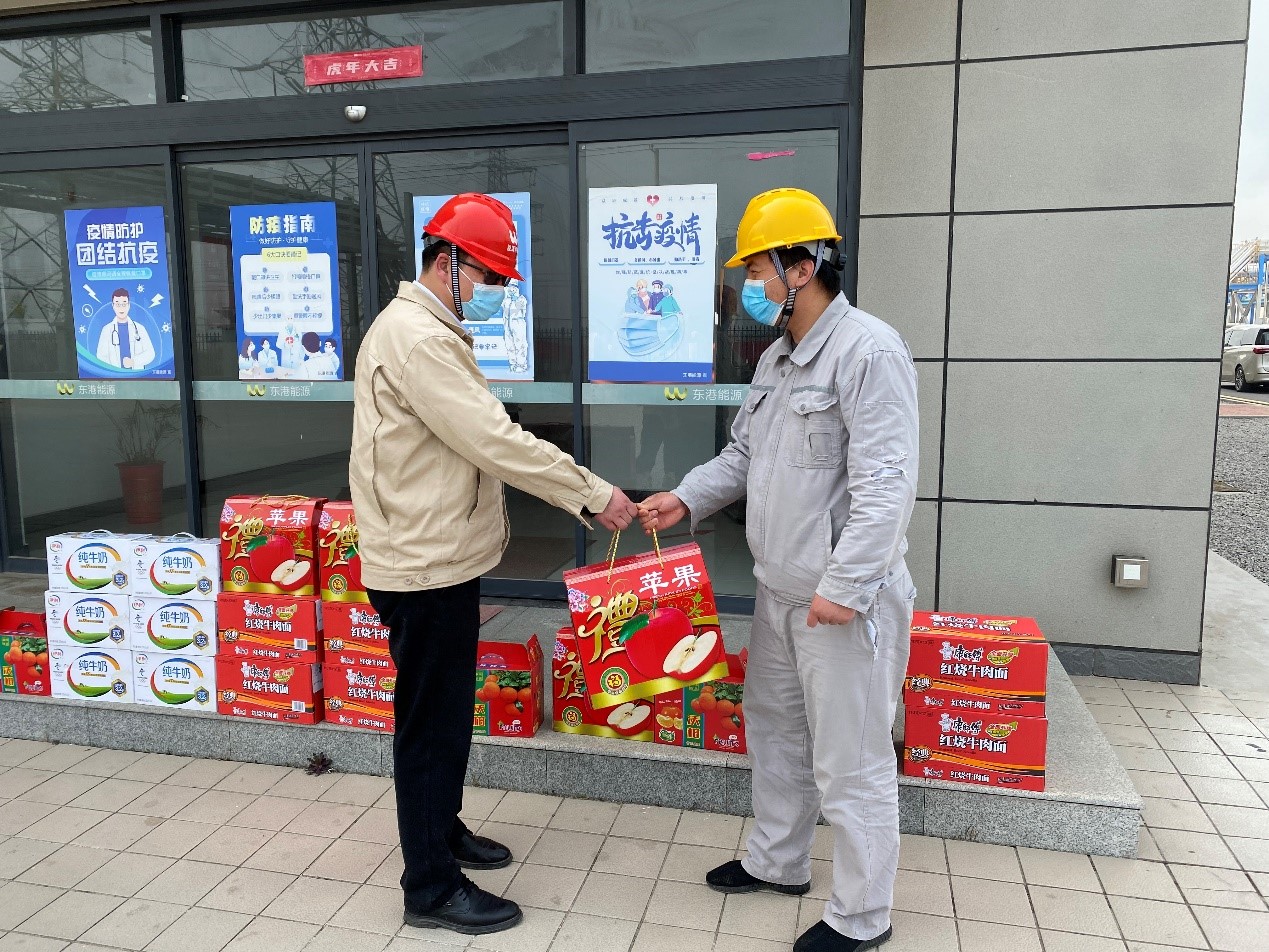 4月7日下午,东港能源公司经营管理层代表对公司220千伏孔桥变电站、220千伏深港变电站运维班组进行了现场慰问,并送去泡面、牛奶、水果等生活物资。