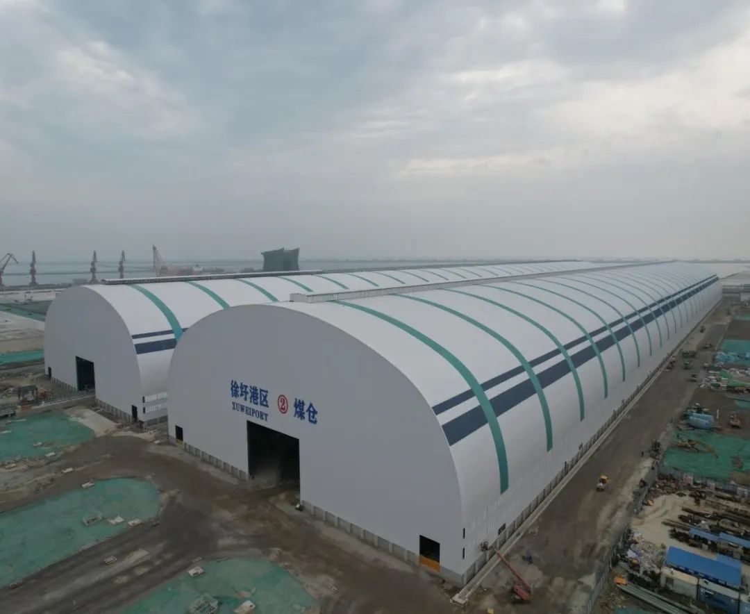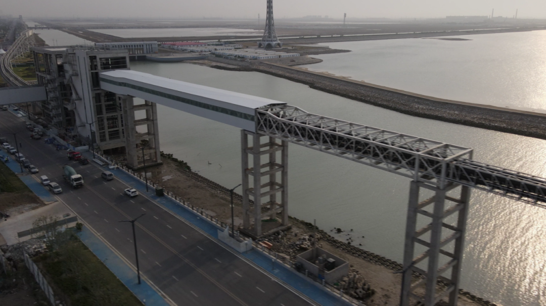 输送栈桥与连云港现代煤炭供应链服务示范基地工程(以下简称“煤炭基地”)作为国家《石化产业规划布局方案》重点支持推进项目——盛虹炼化配套工程,总投资共约28亿元。其中,输送栈桥主要建设双线共18.29公里全封闭管式带状煤炭输送机、8座转运站、1座变电所、3座消防泵房及2座污水处理站,路由全长约8.1公里,输送速度3000吨/时,设计年运量1050万吨。项目自2019年12月动工,预计今年7月份正式运行。