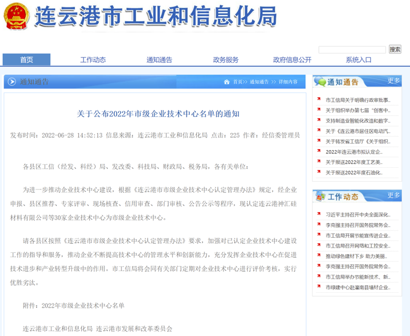 近日,连云港市工业和信息化局发布《2022年市级企业技术中心名单》,江苏方洋水务有限公司荣列其中。