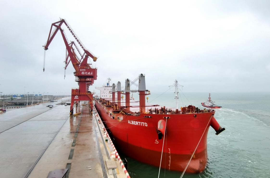 8月29日中午12时40分,随着一声汽笛长鸣,3万吨级“阿伯特”号货轮驶入万象城(中国)128#泊位,它将装载15000吨PTA 前往土耳其。这是徐圩港区128#泊位自国家一类开放口岸获批后迎来的首艘外贸船舶,标志着徐圩港区口岸开放能级得到进一步提升。至此,徐圩港区正式开放的泊位已达11个,涵盖液体散货、干散货、件杂货等多品类货种。