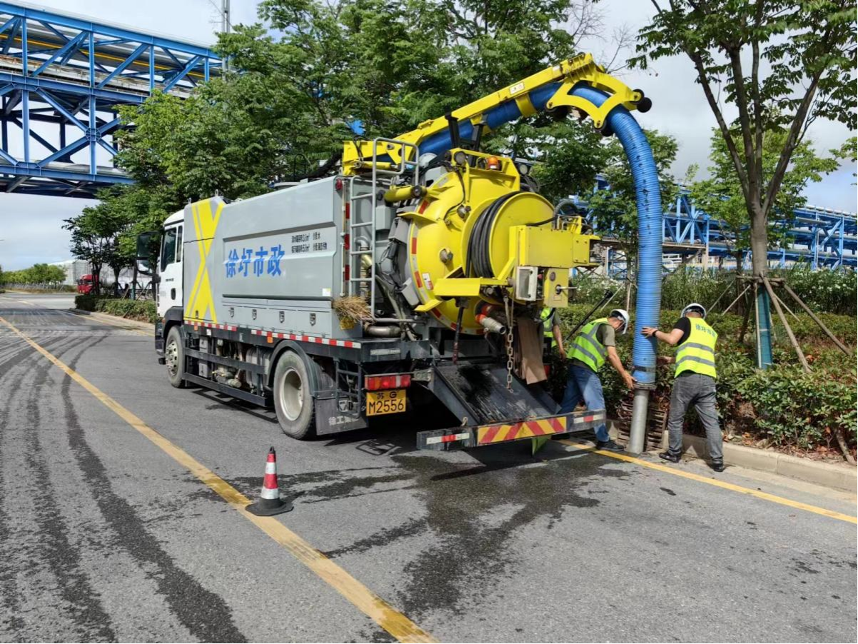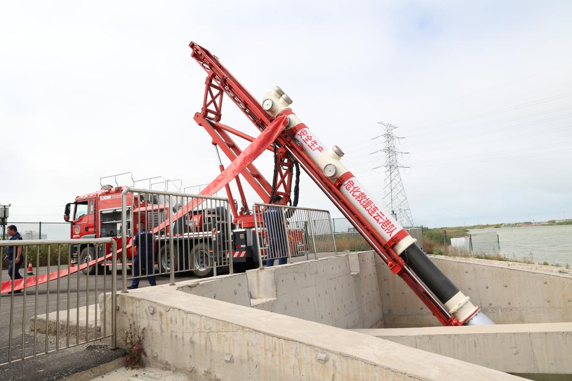 演练模拟受副高边缘影响,徐圩新区范围内短时出现强降雨,部分河道水位暴涨,石化基地路面积水严重,人员、车辆无法正常行驶,现场情况危急。演练突出防汛抢险实战重点,设立排涝抢险、管道疏通、筑堤围堰3个科目,集结出动抢险救援车辆6辆,演练人员23人,最大限度模拟实战状态。 演练开始后,城建公司出动垂直供排水车、移动泵车、联合疏通车、管道机器人、管道潜望镜等陆上装备进行排涝抢险、管道疏通。随后,危化救援连云港队前往险情河段进行筑堤围堰作业,整场演练组织严密、响应迅速、程序精准、分工明确。