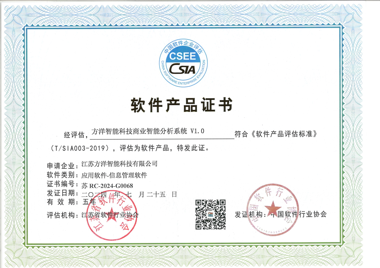 近日,从中国软件行业协会传来喜讯,江苏方洋智能科技有限公司成功获得方洋智能科技大数据平台搭建系统等5个项目软件产品证书,这是方洋智能科技发展自主研发业务以来再次获得的重量级认证,标志着公司在软件自研领域的核心竞争力进一步提升。