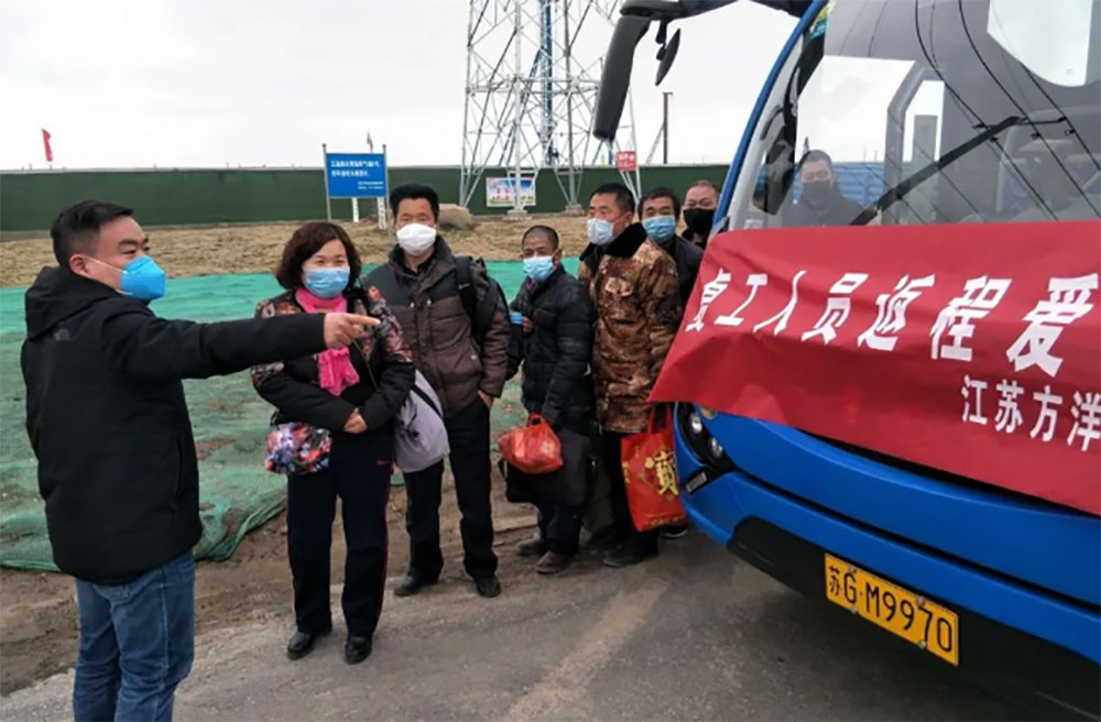 因疫情期间公交停运,为保障企业工人安全顺利到达工作岗位,方洋物流旗下子公司——汽车租赁公司制定各类保障方案,安排专人定期主动对接盛虹石化、珠江钢管、卫星石化等新区企业及各服务组,了解企业返岗人员乘车需求,并拟定车辆租用协议,明确各方防疫工作职责。