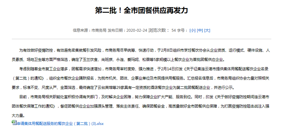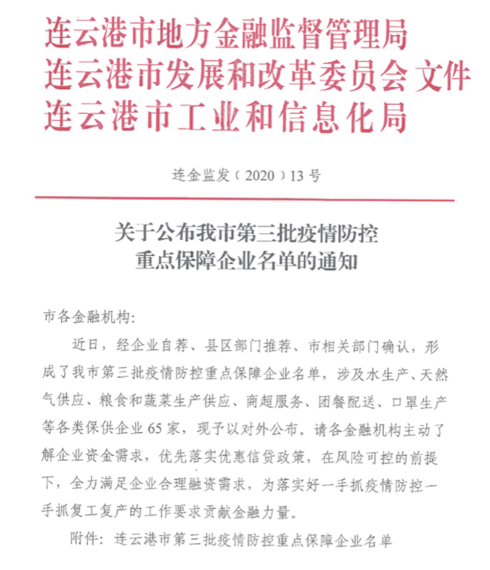 现代服务集团的服务保障工作得到了省市相关部门和园区产业单位的一致认可,成功入选连云港市疫情防控重点保障企业,智汇湾中央厨房入选连云港市疫情期间团餐配送企业,充分展现国有企业的社会责任和担当。