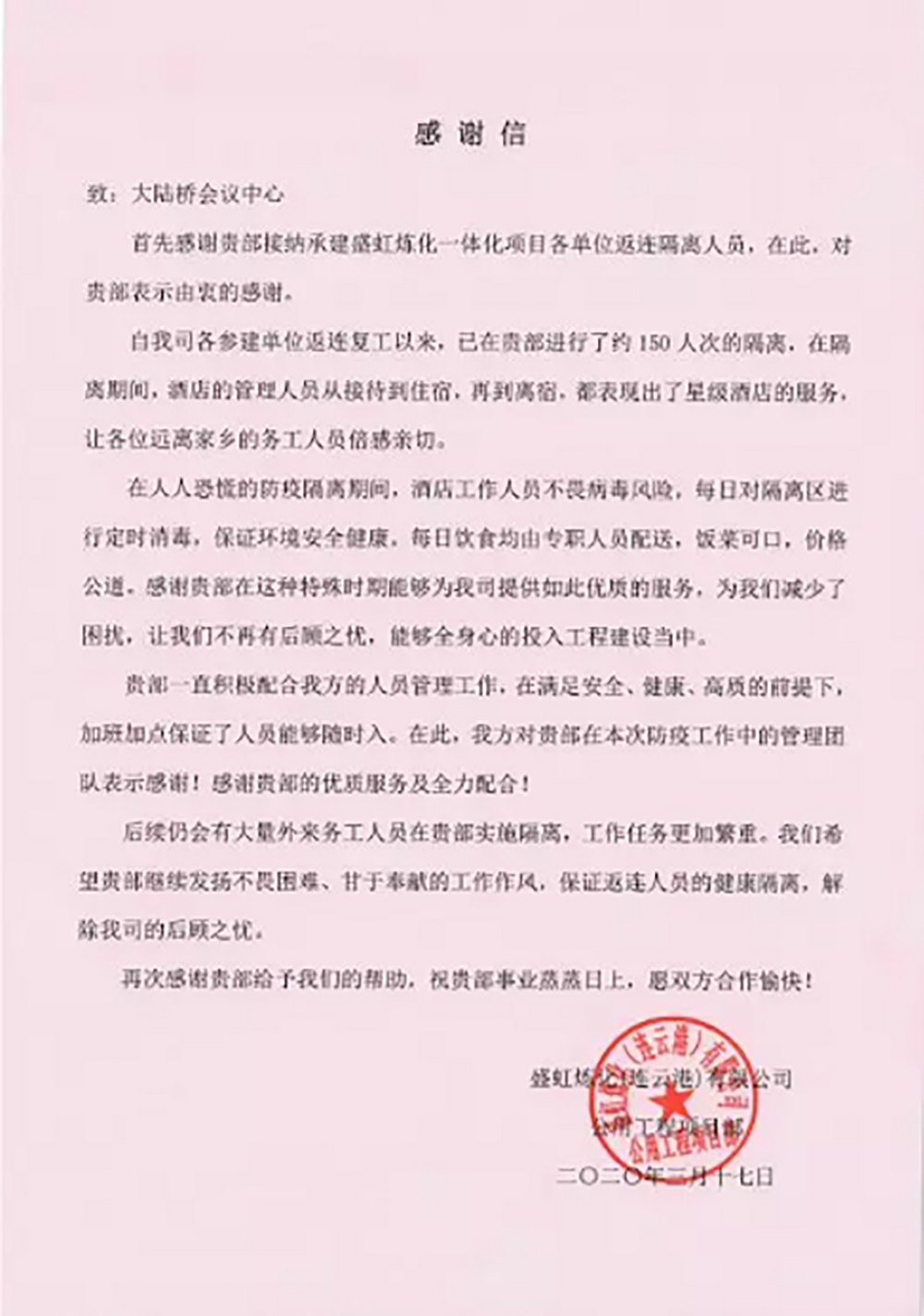酒店住宿板块,全力满足返岗人员医学隔离观察期的住房需求,疫情期间每日只收取50元的消杀防疫费用。房费虽免,但服务品质不变。大陆桥、皇冠商务酒店以“金钥匙”品质累计接待6500余人次。