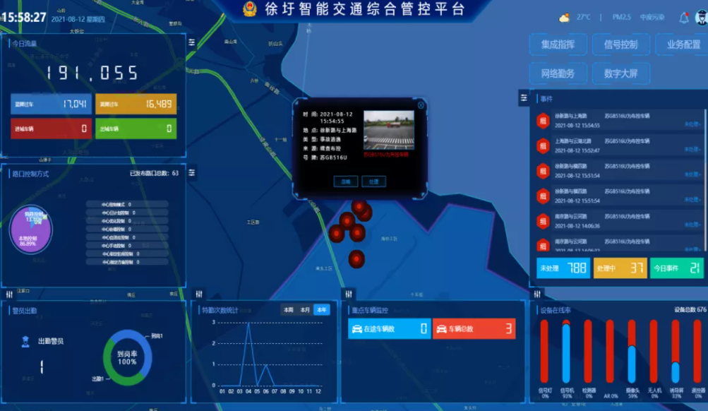 目前,徐圩新区现有电子警察设备380个,卡口设备259个,终端设备101个,信号机133个,球机设备115个。该平台建成投用后,可进一步提高徐圩新区现有监控设备的利用率,实现新区交通信号和监控设备的集中管控,有效推进新区交通安全管理科学化、智能化和精准化,极大提升新区交通警情获知、警情分析研判、重大现场态势感知和扁平化指挥处突能力,助力交警做好新区交通管理工作。
