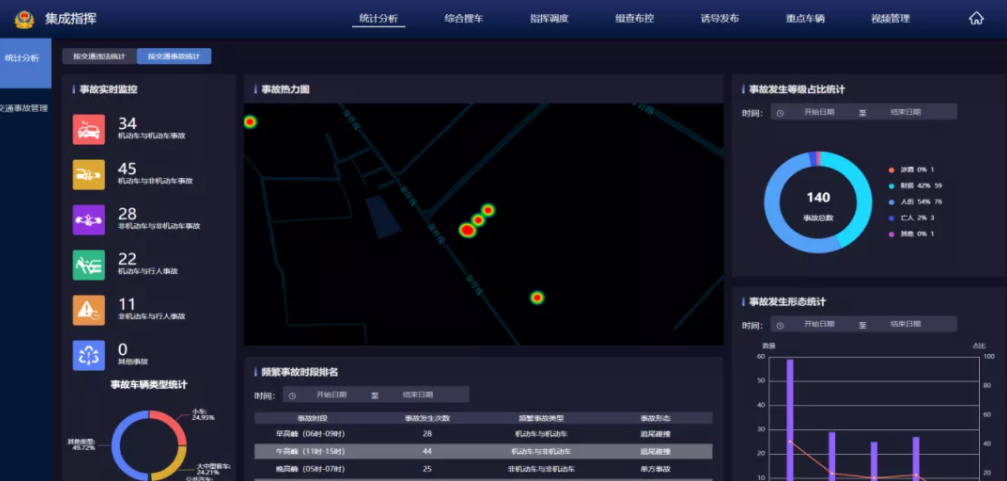 ▲交通事故实时统计及综合分析功能