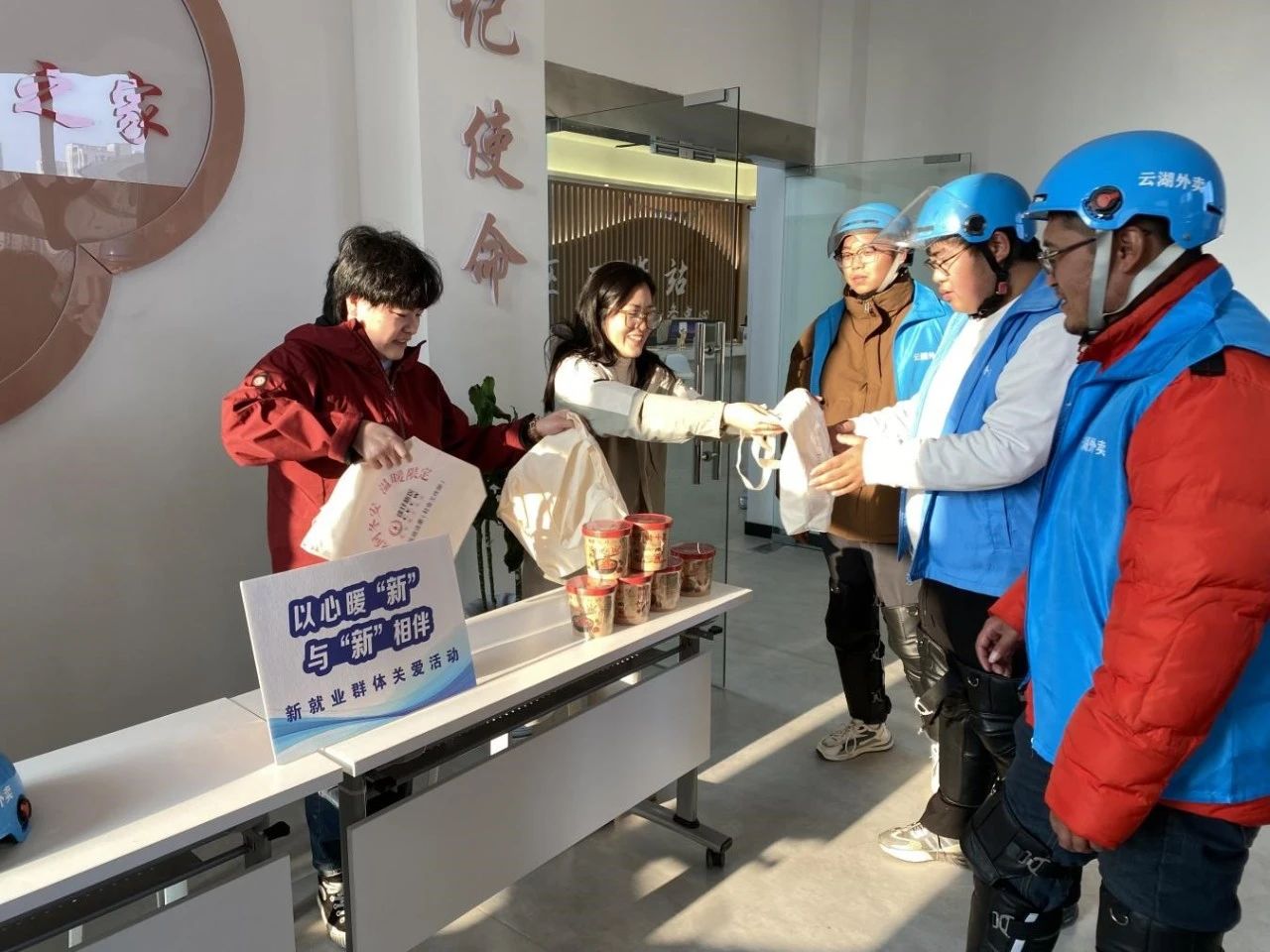 活动最后,工作人员还为外卖员送上了冬季暖心大礼包,并嘱咐骑手们保障餐饮外卖食品的配送安全。下一步,徐圩新区将切实发挥新区各单位、各部门关爱新就业群体的职能,以实实在在的举措,实现管理和服务的双向奔赴,打造“暖人心、聚人气、有温度”的新就业群体温馨港湾。