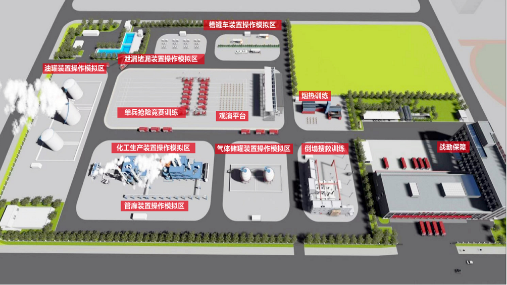 国家危险化学品应急救援(连云港)综合实训基地(以下简称基地)应急救援实训板块,以化工安全生产实训为基础,以应急救援业务为特色,致力于服务世界一流石化园区。配置了包括国内最先进的化工真火训练系统,国内规模最大的烟热训练系统,最真实的1比1还原化工工艺实训系统,涵盖烟热、倒塌搜救、气体储罐事故处置、化工装置事故处置、管廊泄漏事故处置、油罐装置事故处置、泄漏堵漏装置事故处置、槽罐车泄漏事故处置8大区域,可开展危化品生产、运输、装卸、储存等全过程、多场景的事故应急救援实训。